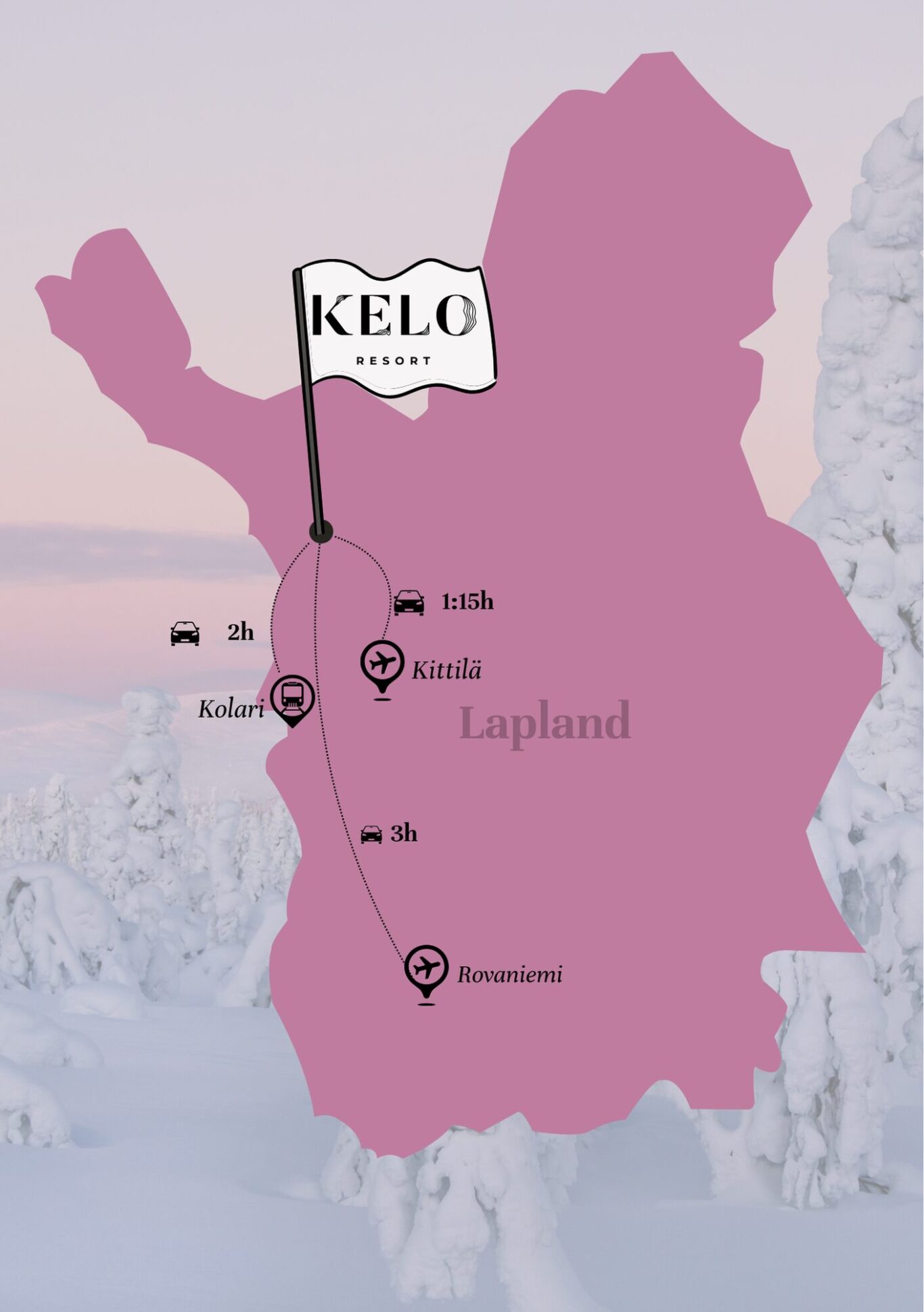 Kelo Resort is located in the small village of Yli-Kyrö, on the edge of Pallas–Yllästunturi National Park in Finnish Lapland. Despite the remote location, we are easy to reach for everyone. Get in touch!