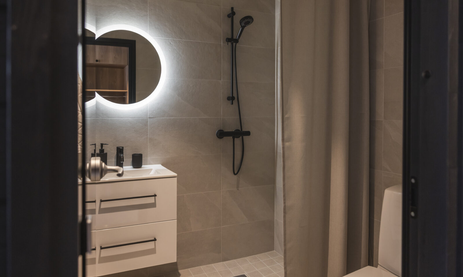 Private bathroom with a shower and toilet