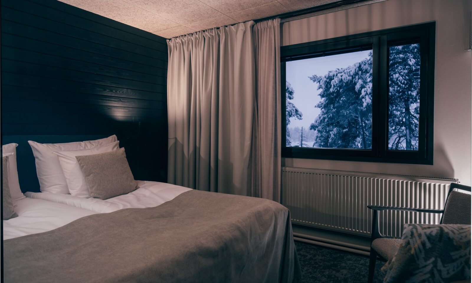 Kelo Resortin vastikään uudistetut hotellihuoneet yhdistävät pohjoismaisen designin lämpimään ja tunnelmalliseen sisustukseen. Jokainen huone on suunniteltu rauhalliseksi levähdyspaikaksi, jonka ikkunoista avautuvat upeat maisemat. Asiakkaat kuvaavat tunnelmaa lämpimäksi ja kiireettömäksi. Kelossa olet kuin kotonasi!